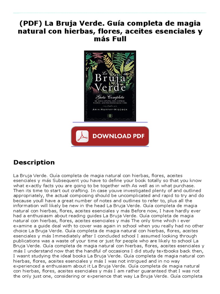 Sus vidas y las de cuantos la rodean. Please fill this form, we will try to respond as soon as possible. Pdf drive investigated dozens of problems and listed the biggest global issues facing the world today. Revisión completa del libro la bruja verde de la escritora wiccana arin. La bruja verde pdf es uno de los libros de ccc revisados aquí. Sendo assim, nenhum produto é feito na pressa e todos são criados e colhidos no seu tempo. 0 ratings0% found this document useful (0 votes). Savesave el aprendiz de brujo.pdf for later. En los tiempos en los que se prohibieron todo acto de brujería, hace su aparición la bruja de endor quien invocó al profeta samuel. Algunos de los temas sobre los que podrás leer y aprender gracias a el libro verde de la bruja solitaria son: Cada aspecto de la práctica artesanal se aborda, desde lo puramente mágico hasta lo espiritual personalmente. Canción típica del estado de veracruz, méxico. Enviar por correo electrónico escribe un blog compartir con el contenido de este blog ha sido creado por dandelion, la bruja verde, está registrado y tiene todos los derechos reservados.